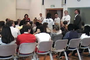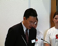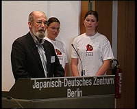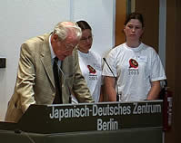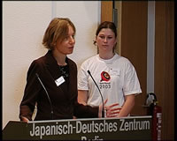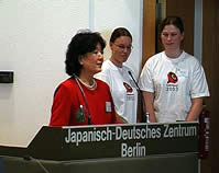 Die Veranstalterin Fr. Yamada-Bochynek (akademische Rätin für Japanologie der FU Berlin) heißt alle Besucher des zum ersten Mal veranstalteten BeNi-Matsuris willkommen.